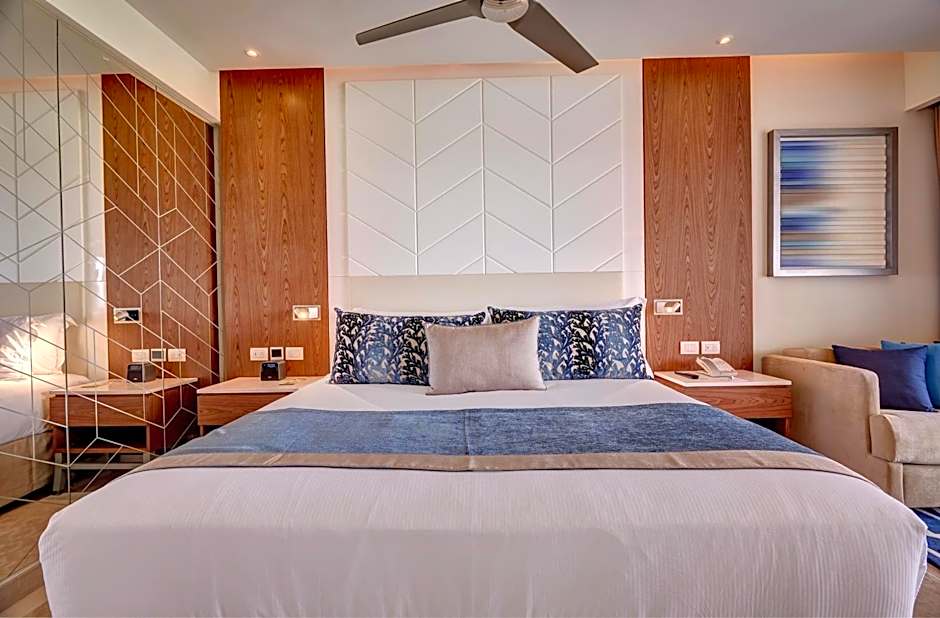Dining options are plentiful, with seven on-site restaurants spanning International, Italian, American, Caribbean, and Latin American flavors, including Gourmet Marché, Grazie Italian Trattoria, C/X Culinary Experience, Beach Club Grill, Hunter Steakhouse, Caribbean Restaurant & Grill, and SCORE Brewhouse. For relaxation, an outdoor infinity pool awaits for adults, and a spa with wellness packages invites unwinding, while a free fitness center keeps workouts on track; snorkeling or water sports are available for an additional fee.