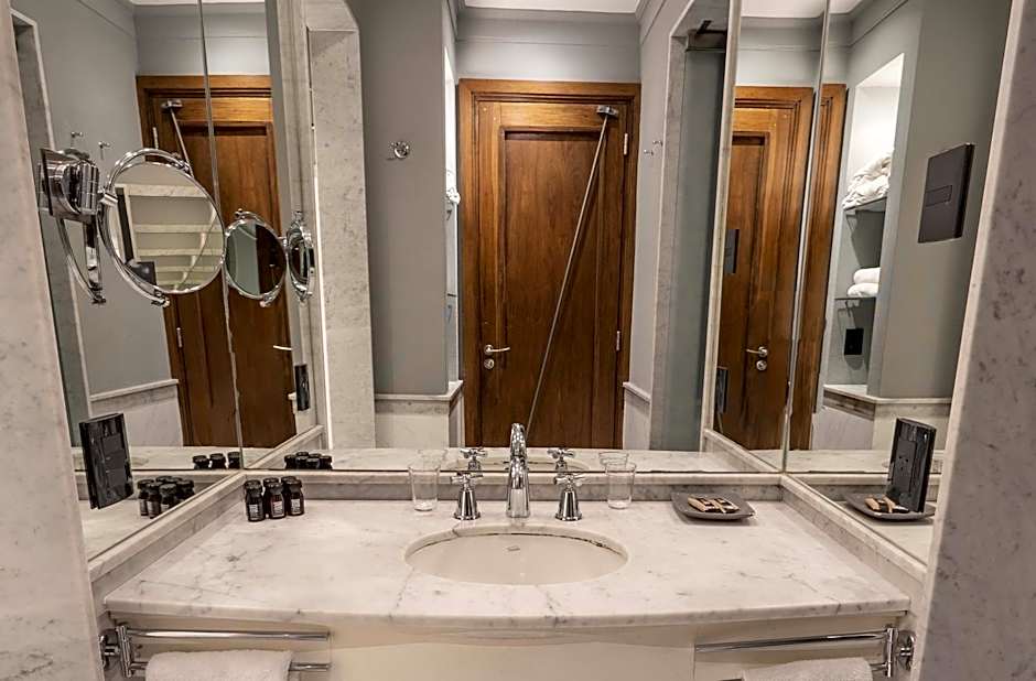 Indulge in the spacious Deluxe Double Room with panoramic lake views, offering a comfortable TwinDouble bed set up for 2 adults and 2 children. Relax in the spa tub, unwind in the private bathroom's bathtub, and enjoy entertainment on the flat-screen TV before retiring to the cozy sitting area.
