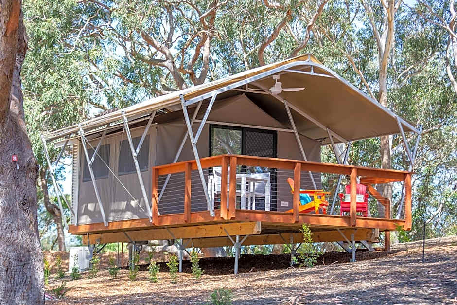 This tent has a private entrance and sofa. Facilities include an private bathroom, air-conditioning, TV, balcony and a kitchenette with a fridge and a microwave.