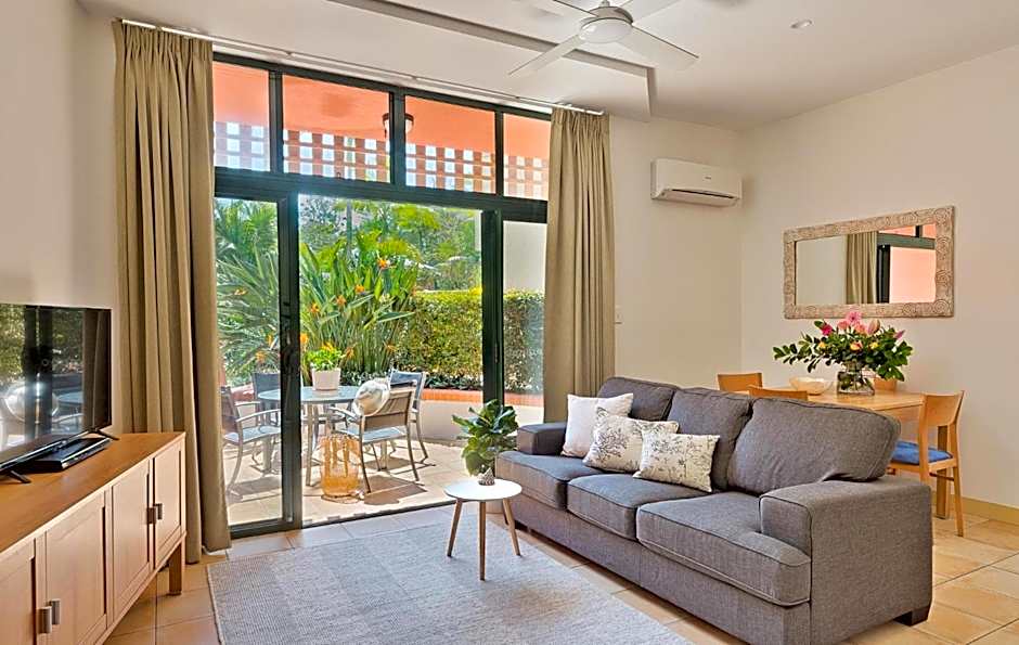 Accommodations range from 1-bedroom and 2-bedroom apartments to 1-bedroom and 2-bedroom villas, plus a pool-view Triple Room. Most options accommodate 2 adults and up to 1 child, with several configurations featuring a private entrance for added privacy and ease. The mix provides flexibility for couples, small families, and groups seeking a seaside base near Byron Bay. Each space is designed to offer comfortable, home-like living with self-catering capabilities.