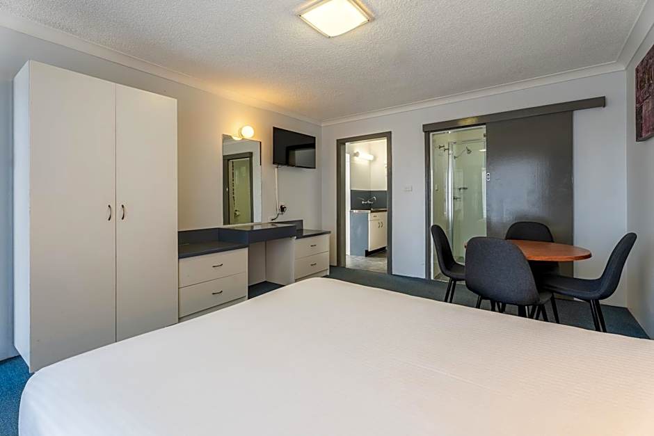 These quiet ground-floor apartments are at the rear of motel and feature parking at the door.