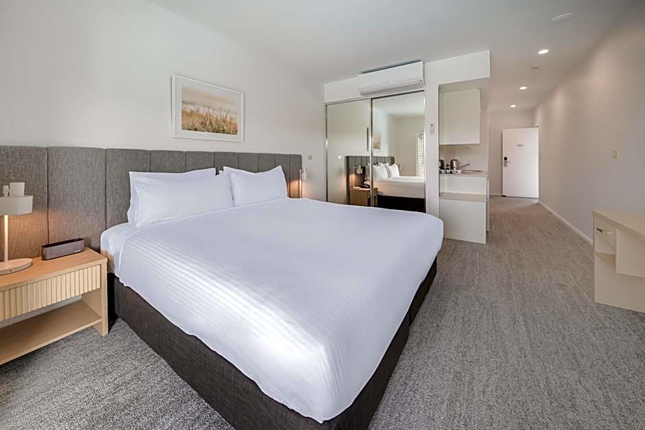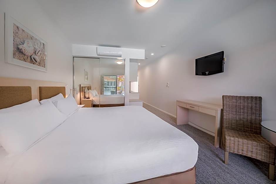 Oaks Port Stephens Pacific Blue Resort offers a variety of room types including studios and apartments. The studio rooms are 355 sqft and accommodate 2 adults and 1 child, while the apartments range in size from 710 sqft to 1550 sqft and accommodate up to 7 adults and 4 children. All rooms are non-smoking and have a combination of king size beds and/or twin beds. Some rooms have swimouts, plunge pools, or lagoon views.