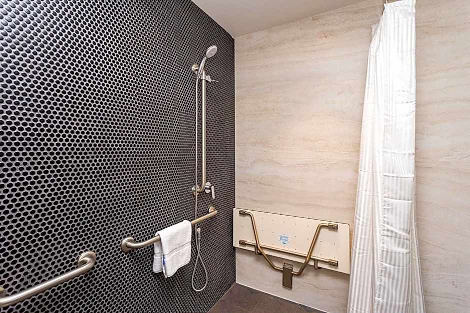The hotel offers a Queen and Single Studio room that accommodates up to 3 adults and 1 child, with a twin bed and a queen-size bed. Smoking is not allowed in this room type. There is also an Accessible King Room and a King Room - Non-Smoking, both accommodating 2 adults and 1 child, with a king-size bed. Lastly, there is a Twin Room with 2 twin beds, suitable for 2 adults and 1 child. All of these rooms have a room size of 323 sqft or 344 sqft.