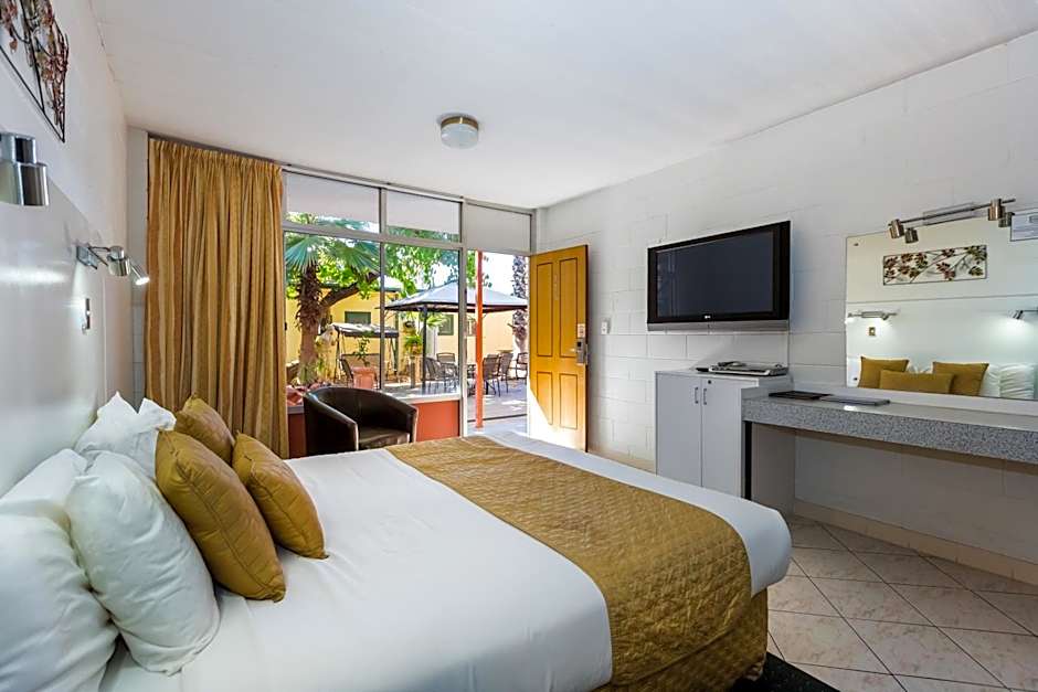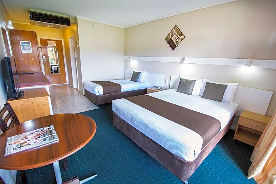 A varied lineup of rooms is available, from Standard Rooms to more expansive options like the Jacuzzi King, King Room, Queen Room, and various Twin layouts and Suites. Non-smoking options and air conditioning are standard, with several layouts accommodating families of multiple sizes. For example, the King Room and Queen Room accommodate up to 4 adults and 3 children, while a Room - 1 Twin seats 3 adults and 2 children; larger suites measure up to 377 square feet. Room sizes range from compact twins to generous suites, with beds including king, queen, and twin configurations. A practical base for exploring central Australia, offering flexible options to fit different itineraries and group sizes.