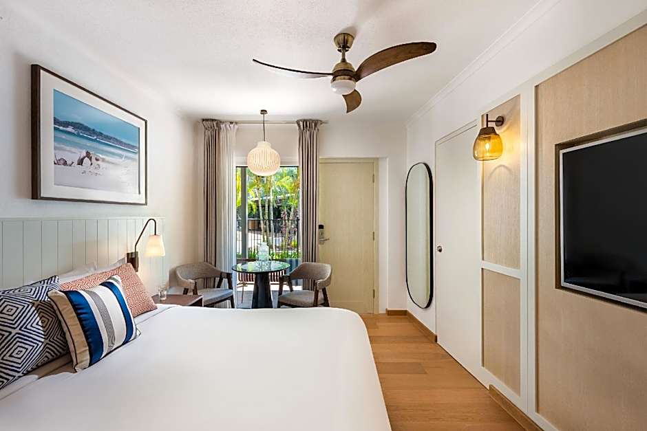 Resort Room is 269 square feet and includes either a king-size bed 150-183 width or 2 single beds 80-130 width plus cable tv, hairdryer, tea and coffee making facilities , and ironing set.