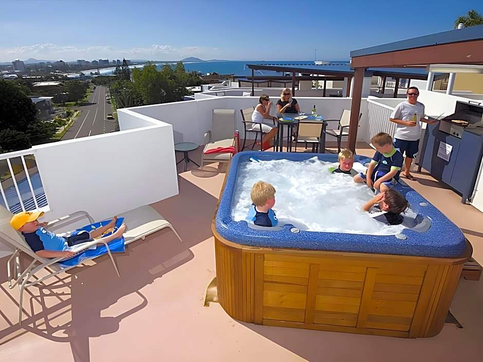 This apartment has a oven, microwave and electric kettle. Featuring the views of Alexandra Headland and Mooloolaba, it offers an access to rooftop area with hot tub.