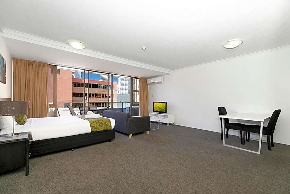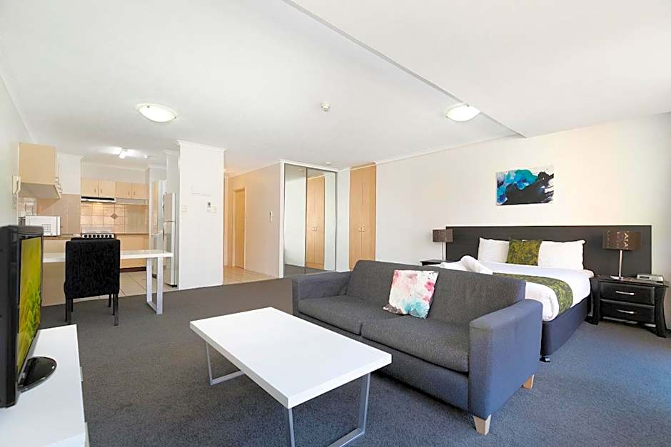 At Astor, you'll be spoiled for choice with a bevy of fabulous amenities designed to pamper and rejuvenate. Dive into the refreshing outdoor swimming pool, unwind in the spa, or indulge your senses in the sauna—everything you need for that perfect blend of relaxation and fun. The well-appointed, soundproof rooms come with everything you need for a comfy stay, including air conditioning, a full kitchen, and even a balcony for those serene evenings overlooking Brisbane's vibrant scenery.