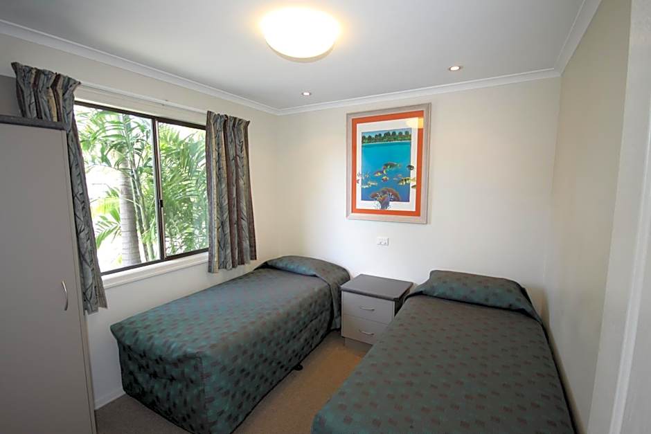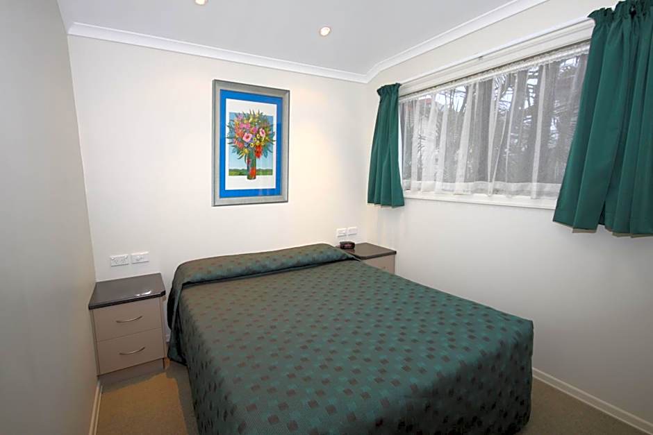 Accommodations span a range of layouts, including 2 Bedroom, Villa 2 Bedroom, Villa 1 Bedroom, Villa 3 Bedroom, and 3 Bedroom configurations—all non-smoking and accommodating 2 adults and 1 child. An outdoor pool with an adults-only policy and a shallow end is available all season, and payments are accepted by Mastercard, Visa, or Eftpos (cash is not accepted).