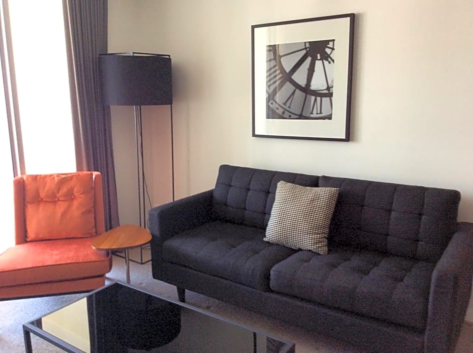 At the Morgan Suites, guests have the choice of three different types of rooms: One-Bedroom Apartment with Mountain View, One-Bedroom Apartment, and One-Bedroom Apartment with City View. All rooms are non-smoking and can accommodate 2 adults and 1 child. The bed size in all rooms is a Queen size bed and the room sizes range from 710 sqft to 775 sqft.