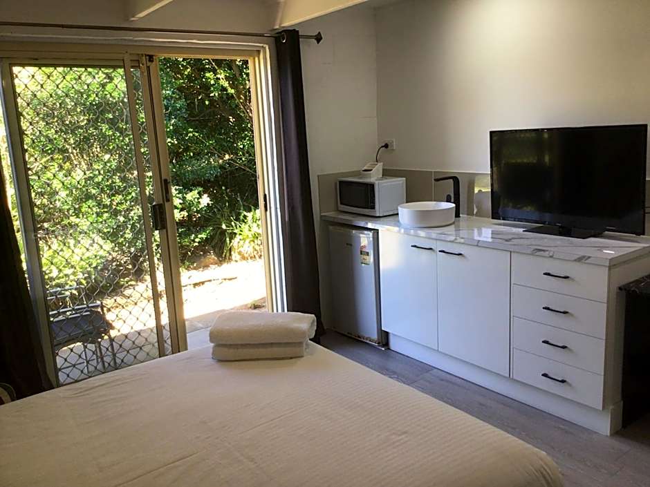 This air-conditioned room has a kitchenette with a microwave, a refrigerator and an electric kettle. The private bathroom has a shower. This unit has 1 Queen bed and 1 single bed.