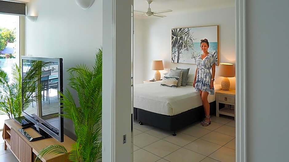 This spacious apartment has a unique swim-out deck providing direct pool access. It has a fully equipped kitchen, a dining area and a lounge room with flat-screen cable TV, a DVD and CD player. It has 2 bathrooms, one with a relaxing spa bath. Please note that the price is based on 6 guests. Maximum occupancy is 7 (see Hotel Policies). Please note views are of the Esplanade only.