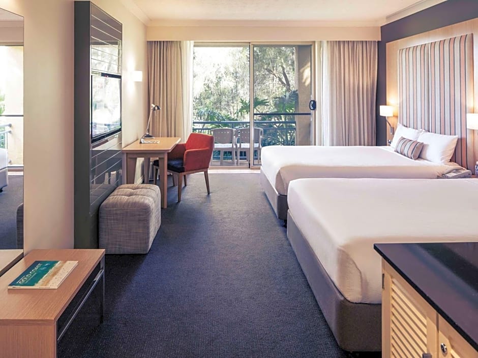 The Mercure Gold Coast Resort offers a variety of rooms including Resort Spa Twin Room, Resort King Room, Resort Twin Room, Resort Twin Room with Golf View, Resort King Room with Golf View, Resort Twin Room with Pool View, Resort King Room with Pool View, and Resort Spa King Room. All rooms are non-smoking and have a room size of 344 sqft. The occupancy ranges from 2 adults and 1 child to 3 adults and 2 children. The bed sizes vary from Queen size beds to King size beds.