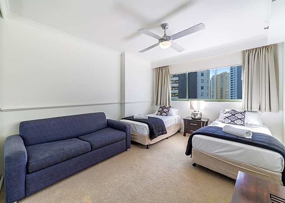 Designed for flexible stays, this property features private entrances and balconies that invite guests to step outside and enjoy fresh air without leaving the apartment. The garden spaces provide a tranquil spot to unwind, while beach chairs are ready for sun-soaked days by the shore. With the Gold Coast’s beachside vibe and convenient on-site amenities, this destination offers a lively yet relaxed base for exploring Main Beach and beyond.