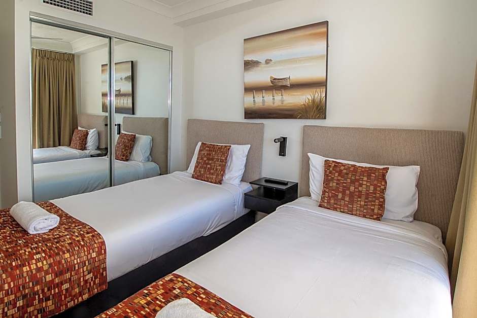 Our spacious Two-Bedroom Apartments feature a queen bed in the master and two single beds in the second room. Enjoy a private balcony with either a pool, garden, river or partial ocean view, separate living area with flat-screen TV and Foxtel, air-conditioning, and a fully equipped kitchen and laundry.