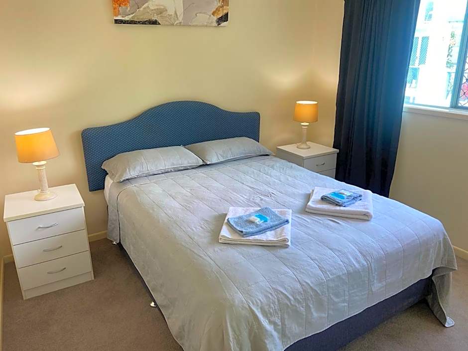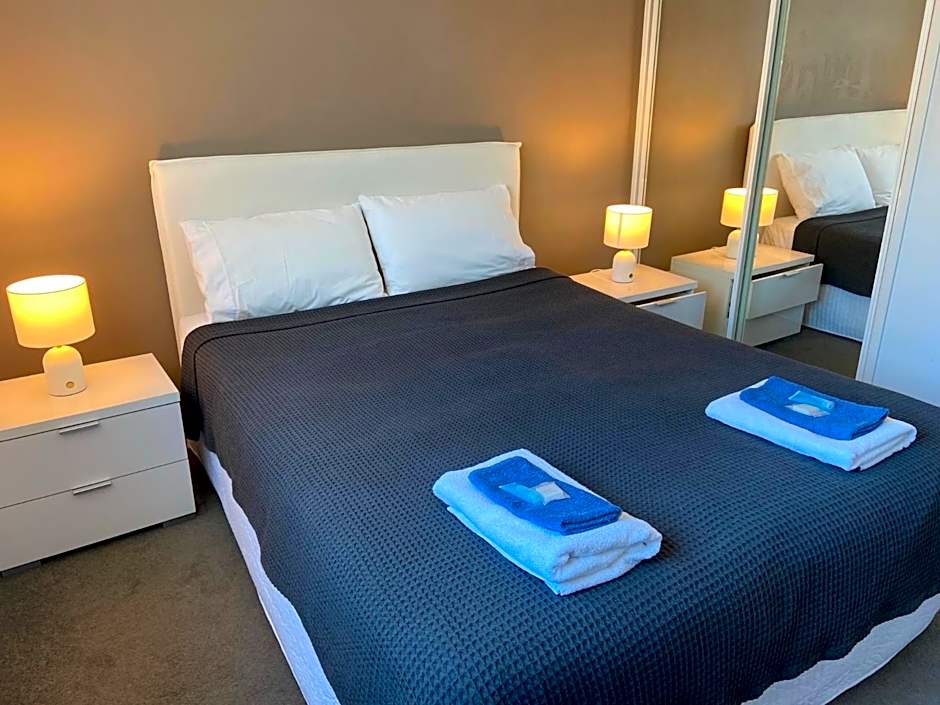 Located on the top floor, this spacious split-level apartment features 2 private balconies with outdoor seating, full kitchen and laundry facilities, and a spacious living room with flat-screen TV with no Foxtel. There is air-conditioning in the upstairs bedroom. Please note that this room will not be serviced for the duration of your stay. Please note there is no elevator at this property. The apartment can only be accessed via stairs.