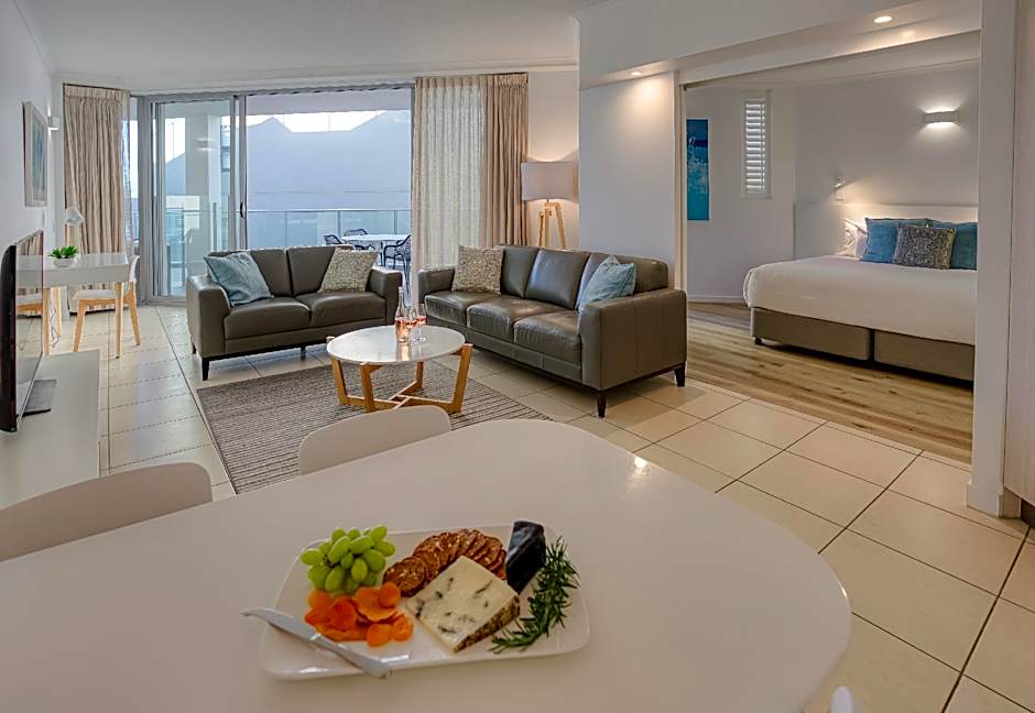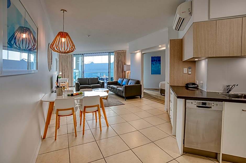 This spacious two-bedroom apartment overlooks Hastings Street. It has a generous open-plan living, gourmet kitchen, private rooftop spa, BBQ and outdoor dining with partial ocean views. Guests receive free WiFi, satellite TV and the apartment is serviced daily.