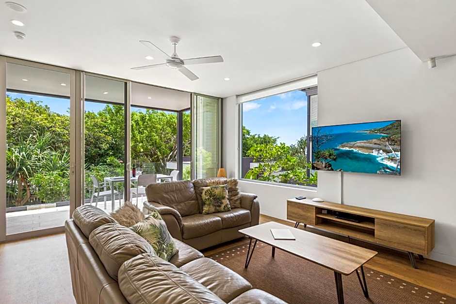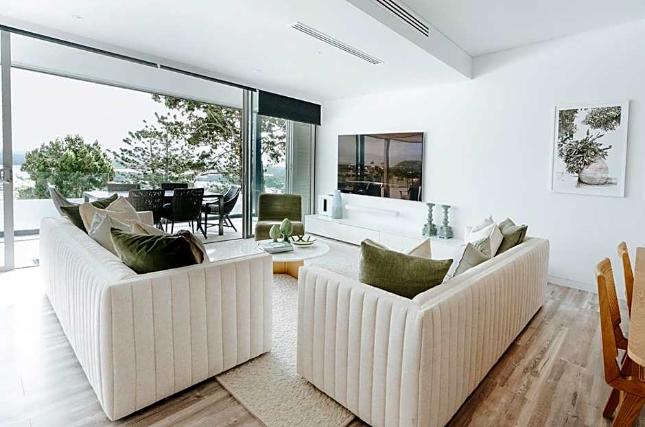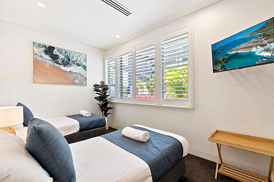 Premium Penthouse has been fully renovated in a modern, relaxed coastal beach house style, building upon the original design, the renovations have further opened up the space and made the apartments even brighter, with new high quality soft furnishings selected by renown local interior designers. Three bedroom premium penthouse is located on the top floor of the top 2 levels of the resort to maximize ocean, mountain and river views. These stunning architecturally designed penthouse apartments include a fully equipped kitchen, laundry and a spacious open plan living and dining area, making them perfect for larger groups. The master bedroom contains a king-size bed, private bathroom, spa bath and walk-in wardrobe and opens out on the balcony so you can enjoy the view from bed, while the other 2 bedrooms are located down a separate hallway and share a bathroom with shower and toilet.