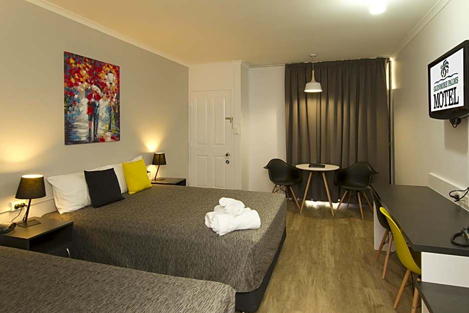 The Glenmore Palms Motel offers Queen Rooms for 2 adults and 1 child, Suites for 5 adults and 4 children, Twin Rooms for 3 adults and 2 children, Double or Twin Rooms with disability access for 3 adults and 2 children, and Family Rooms for 4 adults and 3 children. Smoking is not allowed in any of the rooms. The rooms feature Queen, King, or Twin beds, and vary in size from 323 sqft to 646 sqft.