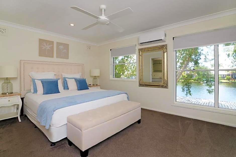 This spacious holiday home is consisted of of 1 living room, 2 separate bedrooms and 2 bathrooms with a walk-in shower and free toiletries. Guests will find a stovetop, a refrigerator, a dishwasher and kitchenware in the fully equipped kitchen. The holiday home also has a barbecue. The air-conditioned holiday home offers a flat-screen TV with cable channels, a washing machine, a private entrance, a tea and coffee maker as well as river views. The unit offers 2 beds.