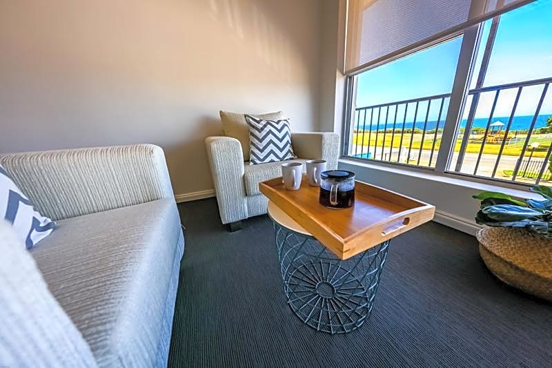 This upper floor suite features spectacular ocean views and big windows to watch the sunsets over the ocean. The spacious light filled open-plan living area includes split-system heating and cooling, kitchenette with a sink, stove top, microwave, refrigerator and tea and coffee making facilities. It also has a dining area, flat screen TV and a bathroom with toiletries. Bedding includes 1 queen bed and 1 single bed with deluxe pillow-top mattresses. Please note that the standard price is based on 2 guests sharing a queen bed. Twin share is an additional AUD 15 per night. Maximum occupancy is 3 (see Hotel Policies).