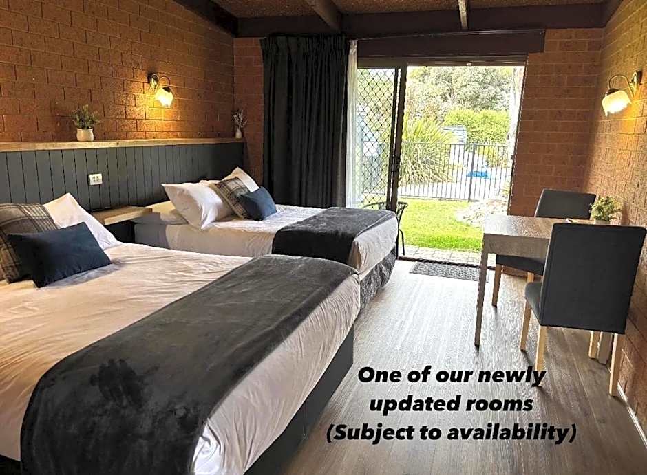The Alexandra Motor Inn in Victoria, Australia offers three types of rooms: Twin Rooms, Family Rooms, and Queen Rooms. Smoking is not allowed in any of the rooms. Twin Rooms and Family Rooms are both 344 sqft in size and can accommodate 4 adults and 3 children. Twin Rooms have 2 Double beds, while Family Rooms have 2 Twin beds and 1 Double bed. Queen Rooms are slightly smaller at 344 sqft and can accommodate 2 adults and 1 child, with a single Queen size bed.