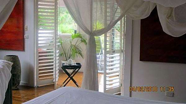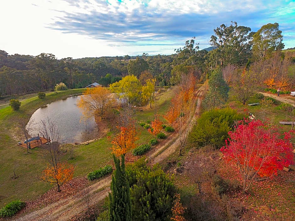 A secluded Balinese-style villa overlooking the creek and valley, completely surrounded by Wombat State Forest.