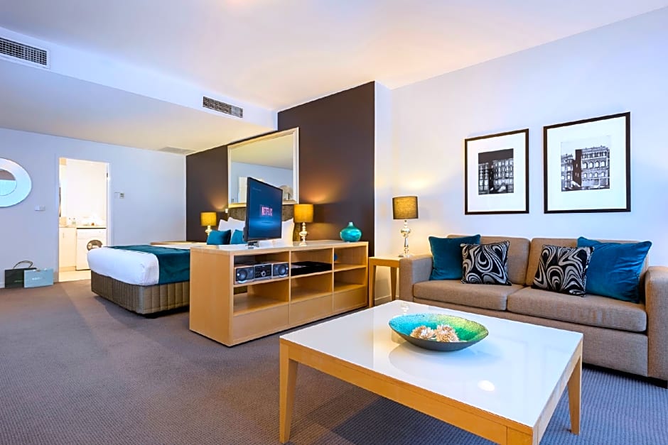 Treasury on Collins Melbourne is a stylish 4-star hotel tucked in the heart of Melbourne, Australia, just 0,2mi from the city center. Guests will find modern comforts with an urban flair, backed by a robust 1,031 reviews.
