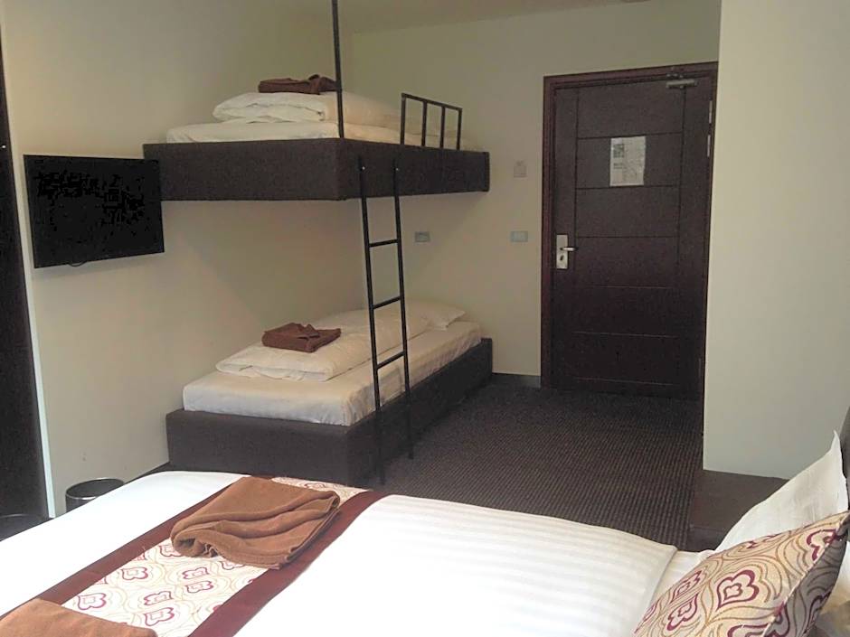Room options span a range of configurations, from Twin and Queen rooms to larger family layouts. For example, the Triple Room provides 1 Queen bed and accommodates 3 adults and 4 children; the Quadruple Room with a Bunk Bed sleeps 4 adults and 3 children; the Queen Room fits 2 adults and 1 child; the Twin Room offers a 1 Twin bed setup; and the Family, Mountain View measures 205 sqft for 2 adults and 1 child. There’s also a larger Family configuration at 194 sqft that accommodates up to 8 adults and 4 children.