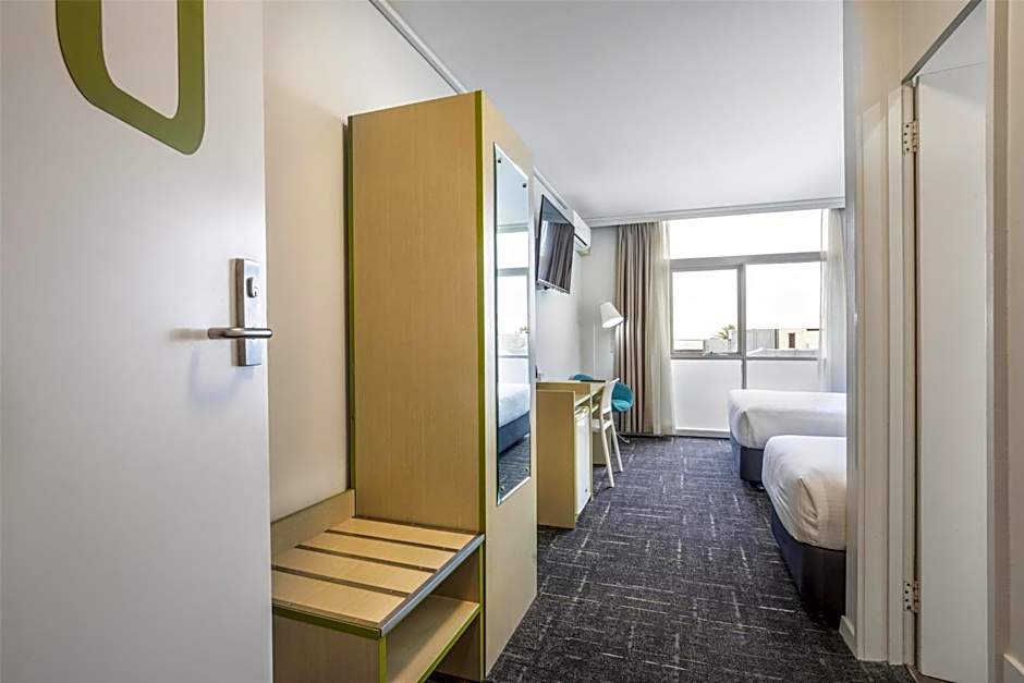 The hotel offers studio rooms with a queen and single bed arrangement, accommodating up to 3 adults. There is also a studio family room available, accommodating up to 4 adults, with a double bed and two bunk beds. Smoking is not allowed in any of the rooms. Both room types have a room size of 215 sqft. The occupancy and bed sizes vary between the two room types.