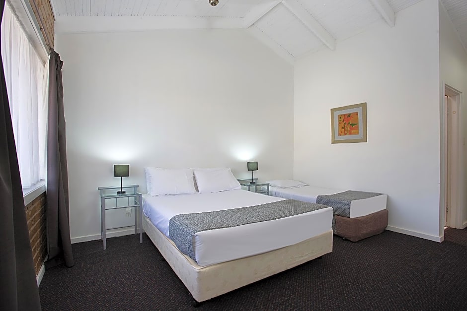 The Goldfields Motel offers a variety of room types including double rooms, family suites, triple rooms, and suites. All rooms are non-smoking and range in size from 140 sqft to 194 sqft. The rooms accommodate different numbers of adults and children, and have beds ranging from double beds to queen size beds.