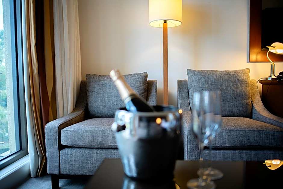 Outdoor spaces are created for sunshine and twilight moments alike, with a sun deck, a terrace, and garden views that accent the surroundings. A spa tub adds a touch of pampering after a day’s adventures, and an on-site golf course is available for an extra charge. For gatherings, meeting and banquet facilities are also available for an additional fee.
