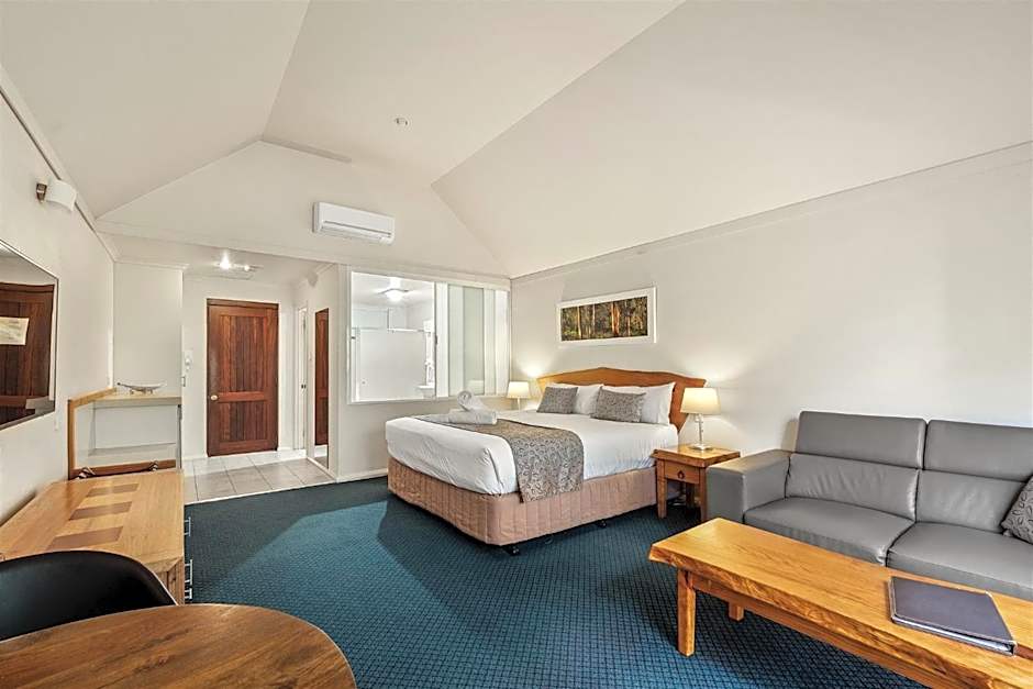 These suites feature balcony with views to the lush forest across the small parking lot and highway. They feature huge 2 person spa bath, blissful king bed, smart TV and free Wi-Fi. Includes a complimentary continental buffet breakfast. A lovely light start to the day with local produce including coffee, juice, cereal and toast. One suite with disabled Facilities. Please note that there is road noise from these Suites as they are the closest to the main road into town.