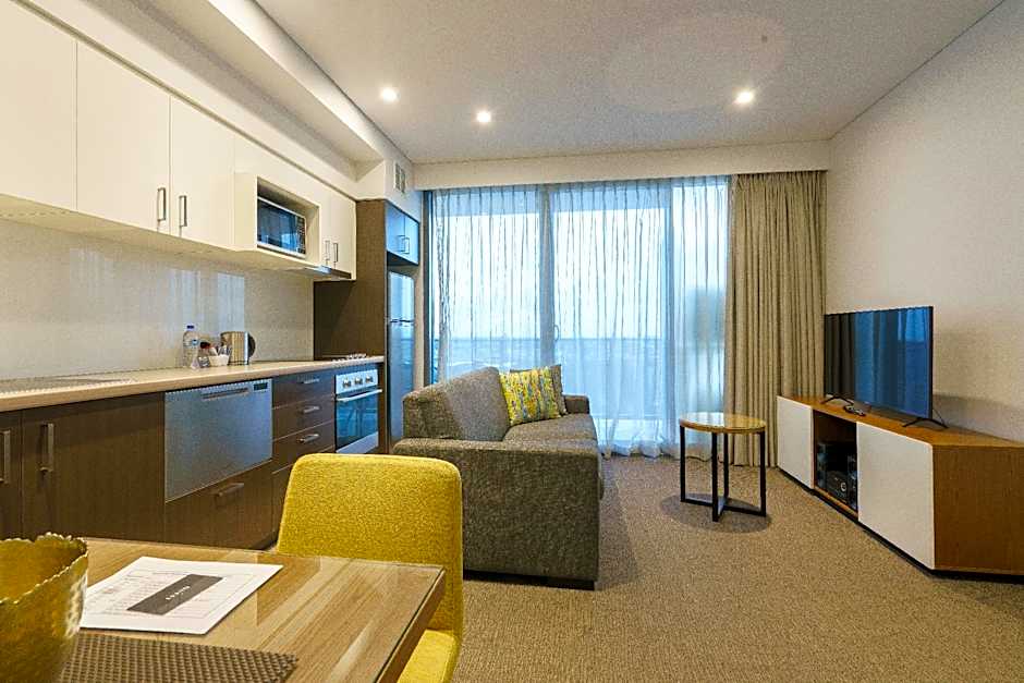 Accommodations cover a range of configurations, from studios to two-bedroom apartments and suites, designed to suit different travel needs. The lineup includes Studio, Executive Studio, One-Bedroom, and Two-Bedroom layouts, with several configurations able to accommodate up to 10 adults. This makes it a versatile base for solo travelers, couples, families, or larger groups seeking a flexible Perth stay.