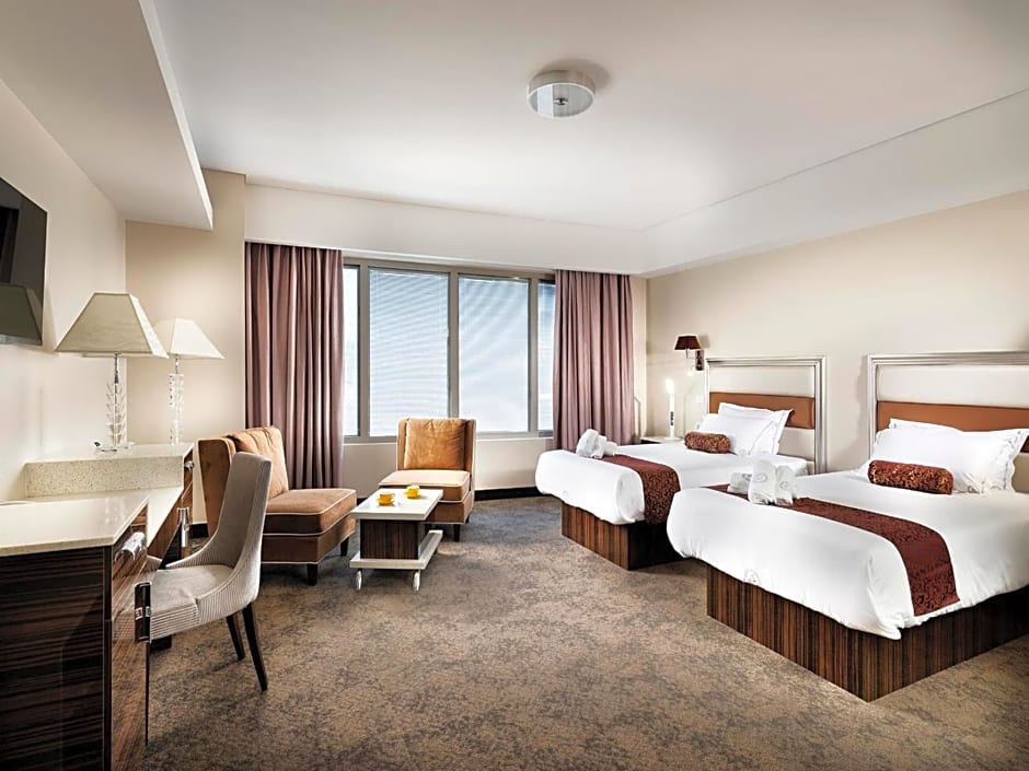 The hotel offers a range of room types including Superior Twin Room, Deluxe Room - Disability Access, Deluxe Twin Room, and Deluxe King Room. Occupancy ranges from accommodating 2 adults and no children to 2 adults and 1 child. Smoking is not allowed in any of these rooms. Bed sizes include twin beds and a king-size bed, while room sizes vary from 301 sqft to 474 sqft.