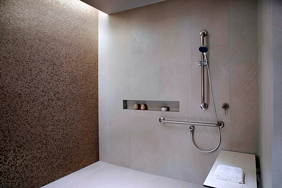 Facilities span wellness and leisure, including Spa/Wellness packages and a Kids' club (free), plus an on-site Restaurant and an Outdoor swimming pool (free). Free Wi-Fi and a Fitness center (free) keep things convenient, while Streaming service (like Netflix), Sauna (free), Hot tub, Bar, and Air conditioning ensure comfort. Free toiletries, Soundproof rooms, Bathtub, Elevator, Non-smoking rooms, Wheelchair accessible, Beach chairs/Loungers, and views of Landmark view and River view round out the setup.