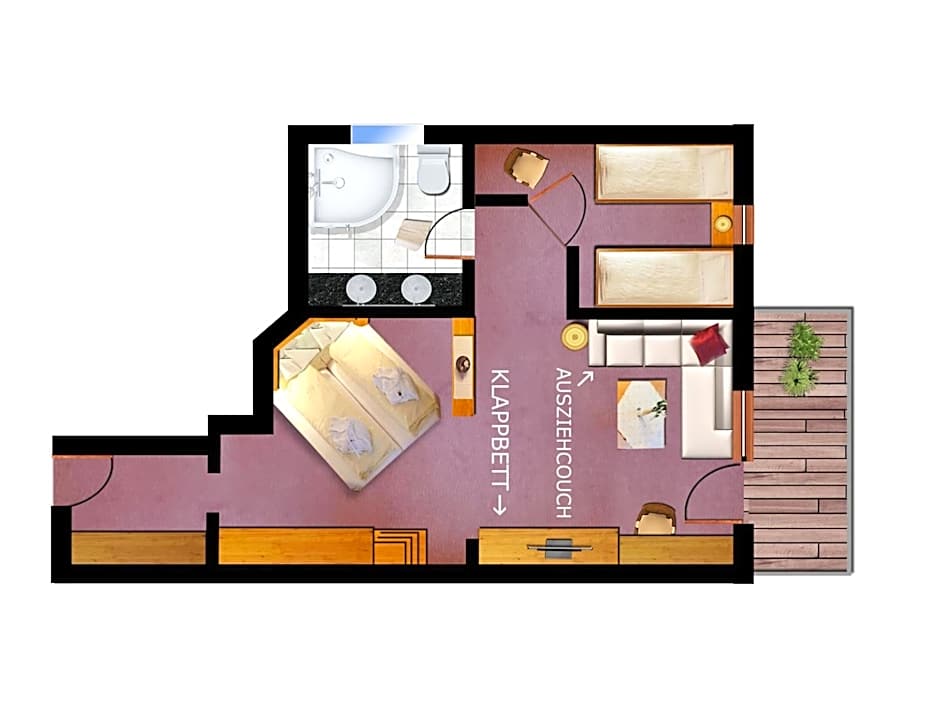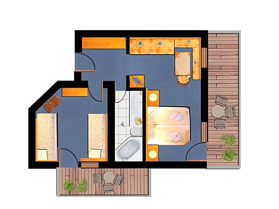 This double room has a balcony, seating area and sofa. Please note that only 1 extra bed is available in this room type.