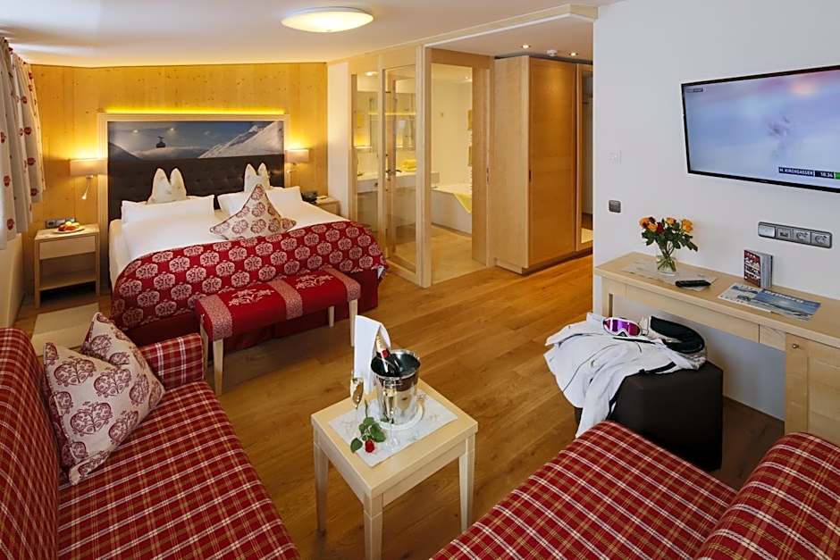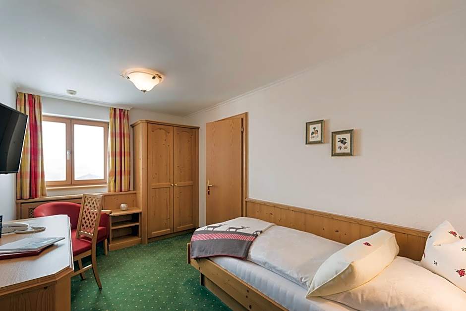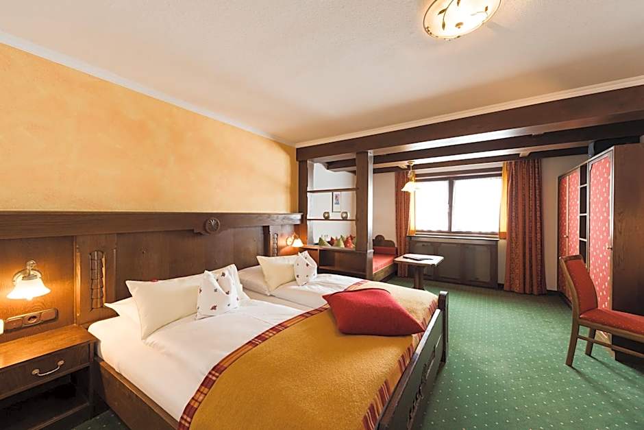 The double rooms are individually designed and mostly furnished in a traditional Alpine style with light-colored wood. Amenities include a mini-bar, flat-screen cable TV, a hairdryer and bathrobes. This room type is also available with twin beds. Please note that extra beds are only available in some rooms.