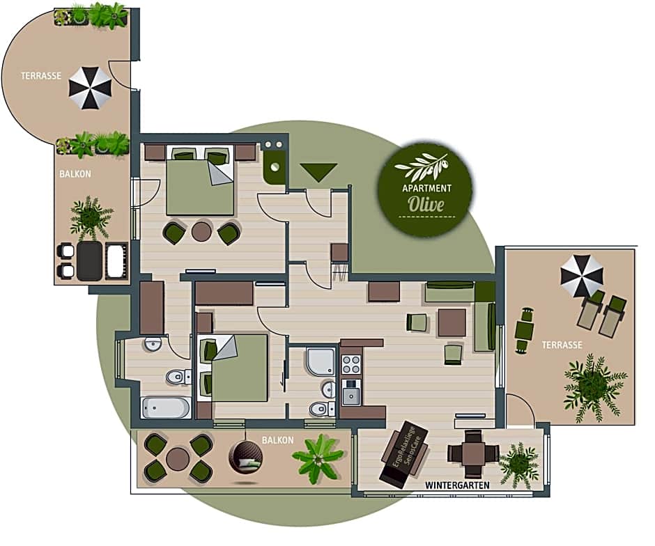 Self-catering is straightforward with a fully equipped kitchen and kitchenware, while free Wifi keeps everything connected. Available apartment options include Apartment, 2 Bedroom; Apartment, Mountain View; Apartment, Terrace; and Apartment, Garden View, each accommodating 2 adults and 1 child and kept non-smoking with free toiletries. For sunny moments, beach umbrellas and chairs are provided, and a sun deck offers a convenient spot to relax outdoors.