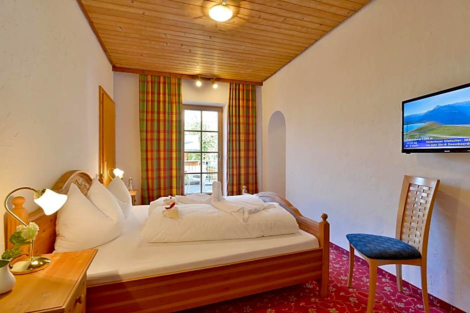 In Tyrolean Alpine style. Some rooms are located on the ground floor and have access to the garden.
