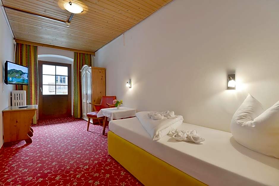 The Posthotel Mayrhofen offers a variety of rooms including standard rooms, suites, and family rooms. Occupancy ranges from single occupancy to rooms that can accommodate up to four guests. Rooms vary in size with different bed configurations, from twin beds to king-sized beds, and offer both smoking and non-smoking options.