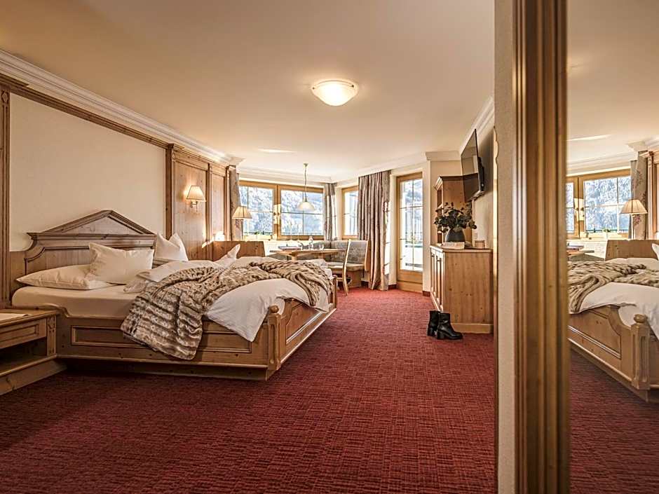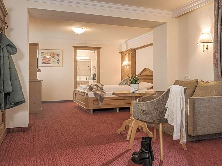 Room options span a variety of styles, from Room With Mountain View and Junior Suite with Balcony to Standard, Deluxe, Superior, Family, Suite, and Suite with Mountain View — with Balcony variants available as well. All accommodations are non-smoking and soundproof, designed to help nights be peaceful after alpine days.