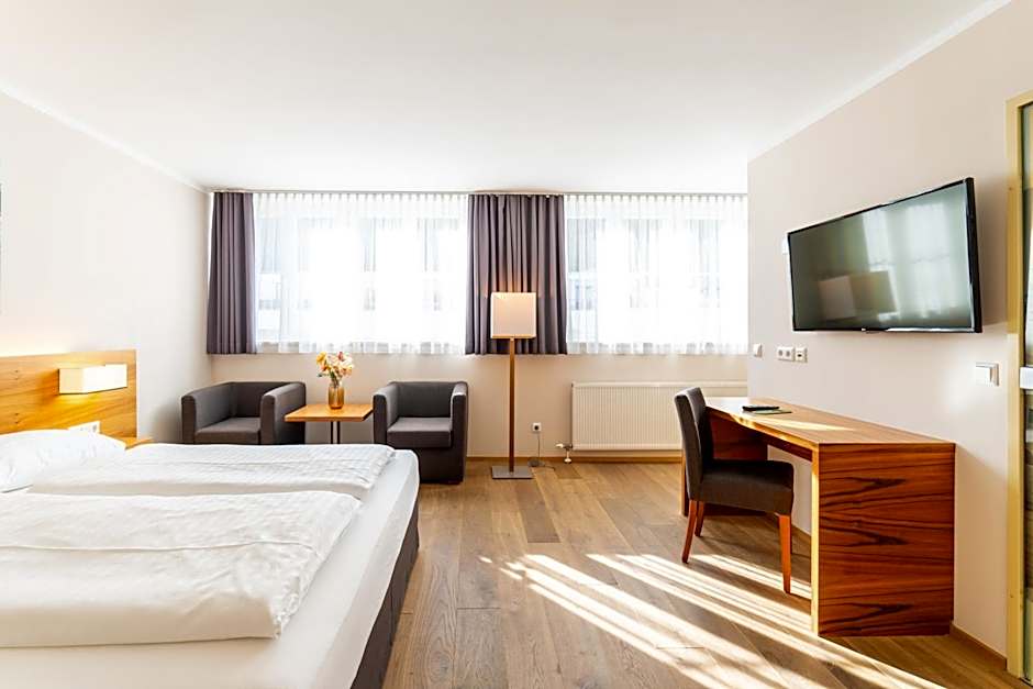 Guests can spend their time at Das Jedermann Boutiquehotel mit Stadtgarten by taking advantage of the featured bar. They can enjoy a variety of alcoholic and non-alcoholic beverages in a stylish and comfortable setting. The bar provides a perfect space for relaxation and socializing, where guests can unwind after a busy day of exploring the city or attending business meetings.