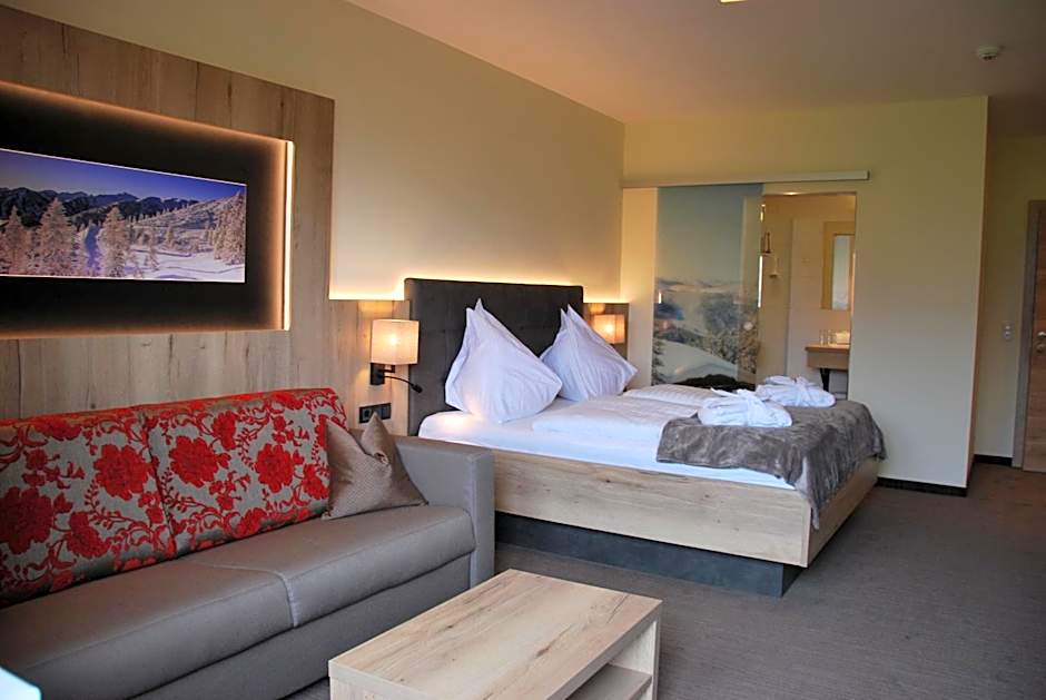 Modern furniture, flat-screen cable TV, double bed and sofa bed. The north-facing rooms overlook the Dachstein Mountain Range, the Upper Enns Valley and Schladming. The east- and south-facing rooms overlook the Planai und Hochwurzen Mountains.