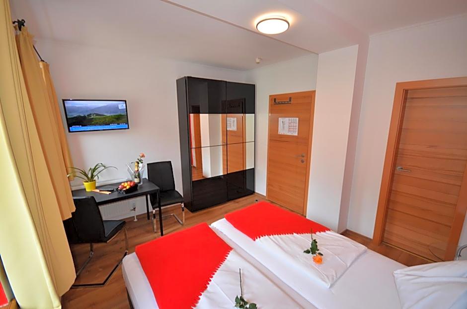 Hotel Traube offers a range of room types including Standard Double Room, Budget Double Room for single occupancy, Family Room for 2 Adults + 2 Children, and Superior Double Room. Occupancy varies from 2 adults for Budget Double Room to 3 adults and 2 children for the Family Room. All rooms are non-smoking with bed sizes ranging from Twin to Queen.