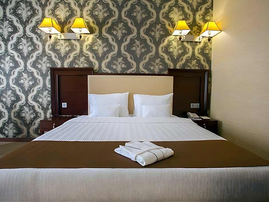After a day of exploring Baku or unwinding at the hotel's fantastic amenities, retire to one of the beautifully appointed rooms at the Emerald Hotel Baku. You can choose from a range of room types designed to suit your preferences and needs. From the comfortable Superior rooms to the indulgent Suite with a Hot Tub, each accommodation option promises a peaceful and relaxing stay. With amenities like soundproofing, air conditioning, and free WiFi, rest assured that your comfort is a top priority.