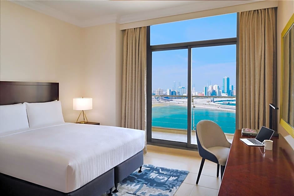 At Marriott Executive Apartments Manama, Bahrain, guests can enjoy a range of leisure amenities. They can spend their time lounging by the outdoor swimming pool, which features a shallow end and offers a view. There is also a separate kids' pool available for families traveling with children. The hotel also has a water park, offering fun-filled activities for guests of all ages.