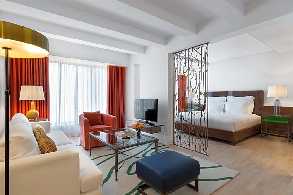 The Merchant House offers a variety of suites, including the Corner Suite, Executive Suite, Urban Suite, Signature Suite, and Urban Plus Suite. These suites range in size from 409 sqft to 646 sqft and all have one King size bed. Smoking is not allowed in any of the suites. The occupancy varies, accommodating either 2 adults and 2 children or 2 adults and 1 child, depending on the suite.