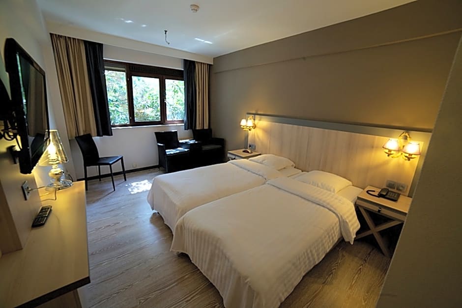 This spacious room features a flat-screen TV, a writing desk and a telephone. It also includes a private bathroom and a toilet.