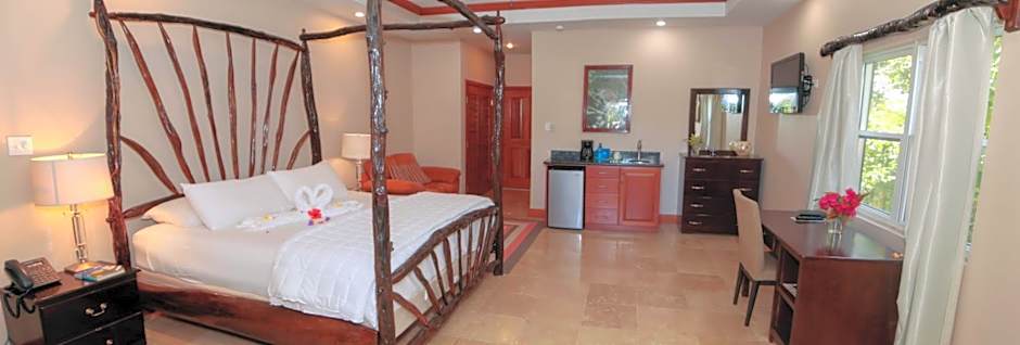 Offering excellent views of the property's gardens, this large suite features a king-size bed with premium linens. It is air-conditioned and has a ceiling fan and an over-sized bathroom that includes a tiled shower, a dual vanity, a hairdryer and free organic toiletries.