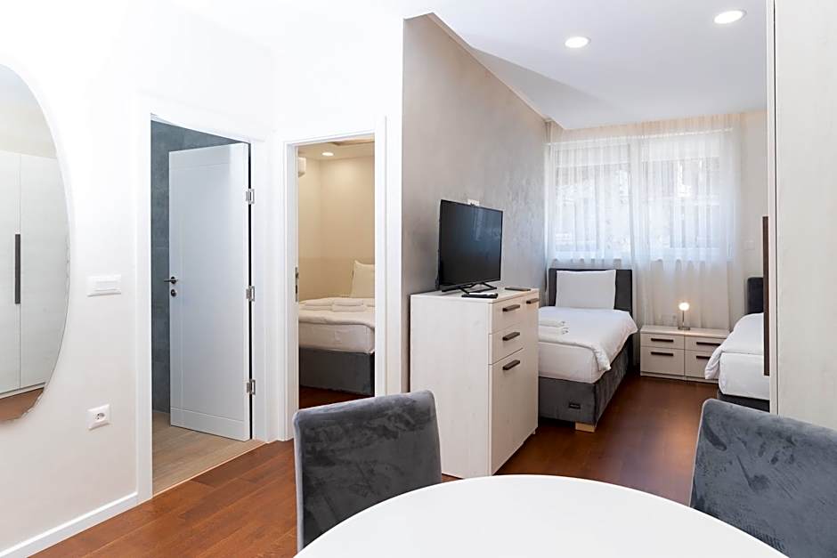 A diverse slate of accommodations is listed, ranging from Deluxe Studio and Studio options with balconies to multiple-suite configurations, including the Presidential Suite. For groups or families, options like the Studio, 2 Twin, Balcony Suite can sleep up to five adults, while other layouts cater to different needs. With these varied layouts in a central Sarajevo setting, this property serves as a lively base to explore the city.